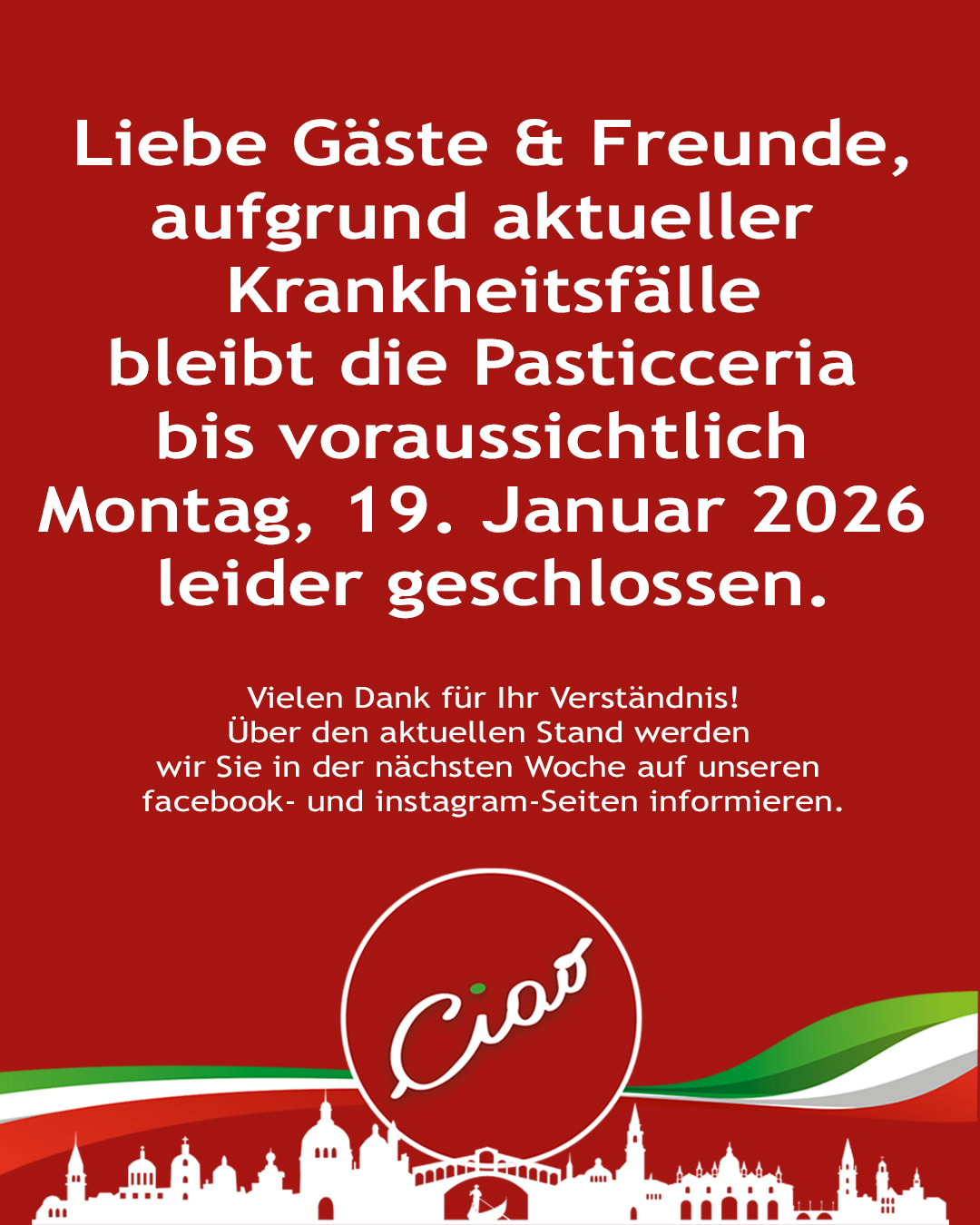 (Bitte beachten: Nur die Pasticceria ist auch Sonntags geöffnet!)
